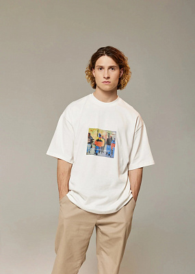 На груди изображен принт в стиле картины, выполненный шелкографией.