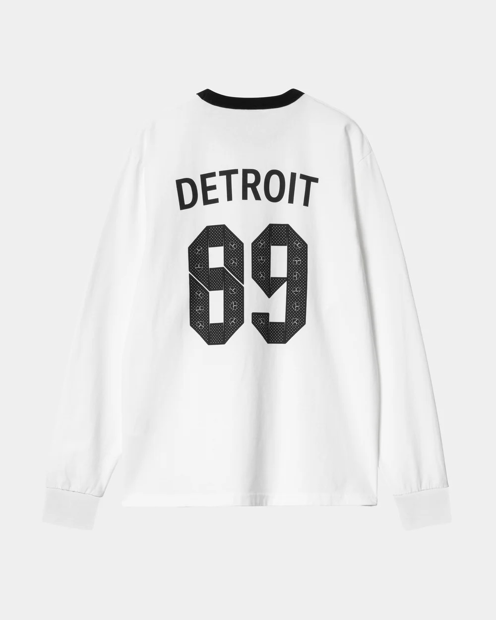Лонгслив 89 Ringer изготовлен из хлопкового трикотажа средней плотности, имеет стандартный крой, контрастную ребристую отделку. Графические принты расположены на спине и груди изделия.