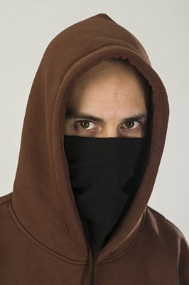 Мужская толстовка увеличенной размерной сетки. Широкая пройма и рукава. Маска из тонкого эластичного материала, вшитая в капюшон.