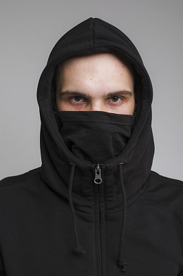 Мужская толстовка с капюшоном и вшитой в него маской. Классический крой. Высокий ворот. Два кармана на молниях.Материал: 320 грамм футер без начеса.