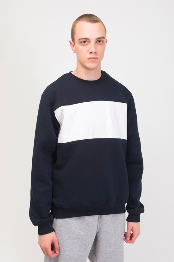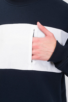 Мужская толстовка без капюшона. Классическая размерная сетка изделия. Карман на потайной молнии на груди.