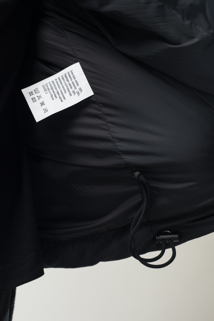 Регулировка по низу изделия при помощи эластичного шнура и пластиковых фиксаторов.