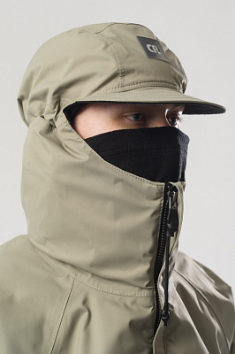 Капюшон с козырьком и высокой стойкой;