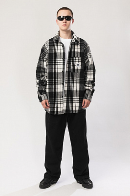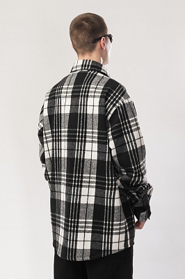Рубашка в клетку свободного кроя с накладным карманом на груди.