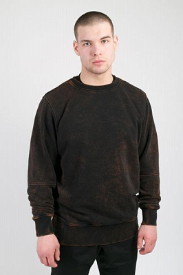 Мужская толстовка без капюшона из футера без начеса. Немного удлиненный силуэт. Профилированные рукава. Оригинальные элементы кроя. Для производства данного изделия применена технология двойного крашения готовой вещи.