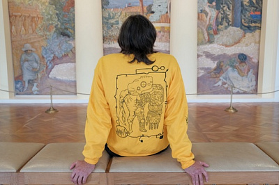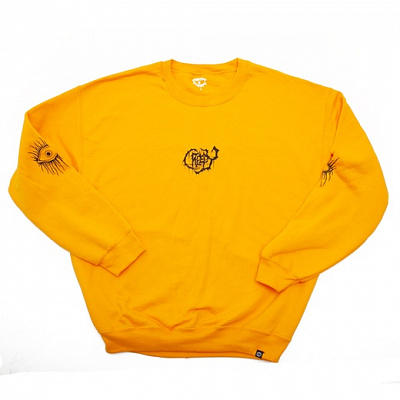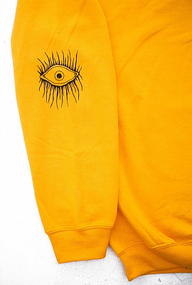 -горчичный свитшот(80% хлопок 20% п/э с начесом)-принт на груди , спине и рукавах
