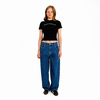 Укороченная женская футболка из плотного фактурного хлопка. Нанесение выполнено шелкографией