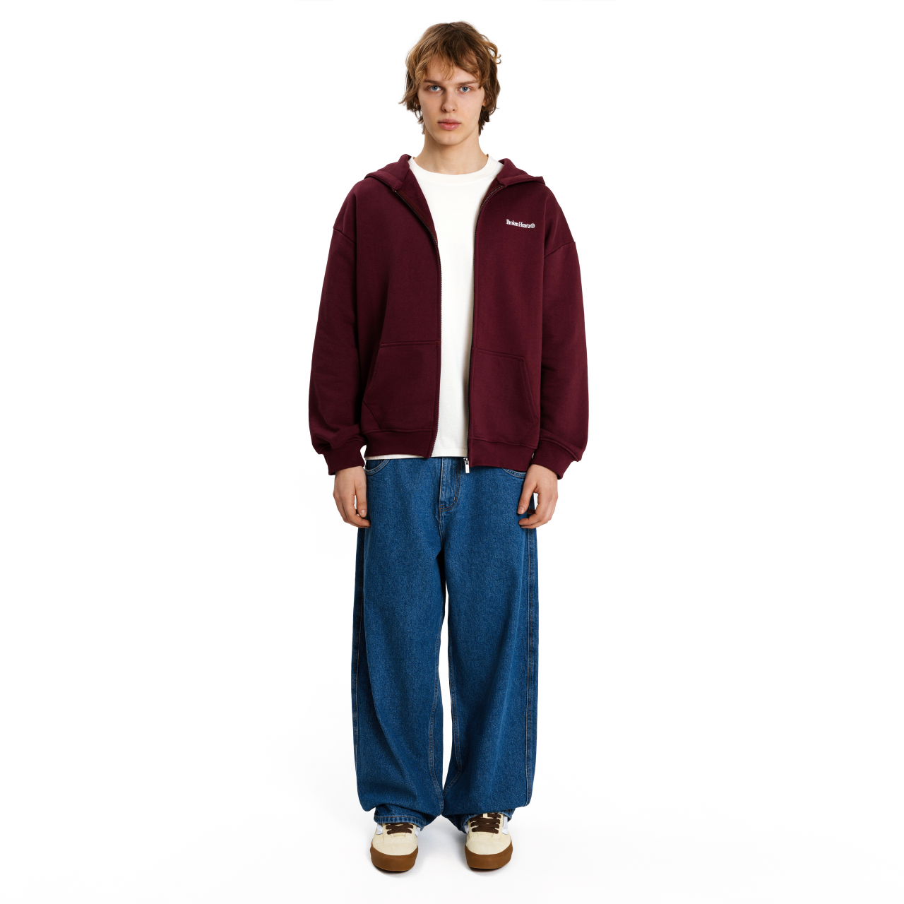Худи умеренного оверсайз кроя из плотного хлопка с брендированной металлической молнией. Нанесение выполнено вышивкой