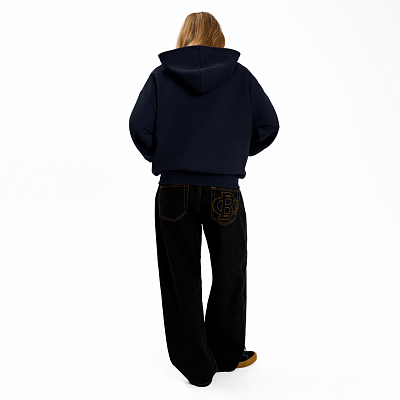 Худи умеренного оверсайз кроя из плотного хлопка с брендированной металлической молнией. Нанесение выполнено вышивкой
