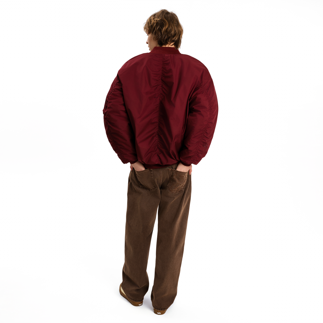 - Оверсайз крой со сборкой рукавов и спины;