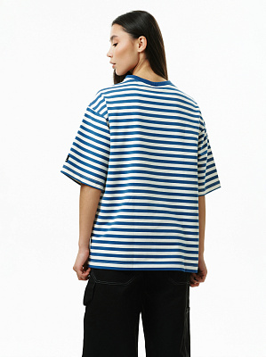 Футболка THE BAD FRIENDS UNIBasic left sleeve logo 250гр Stripes экрю-индиго