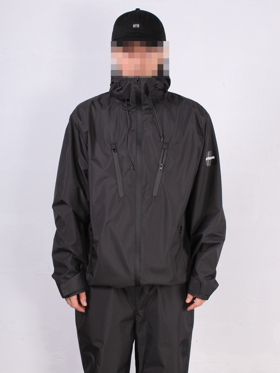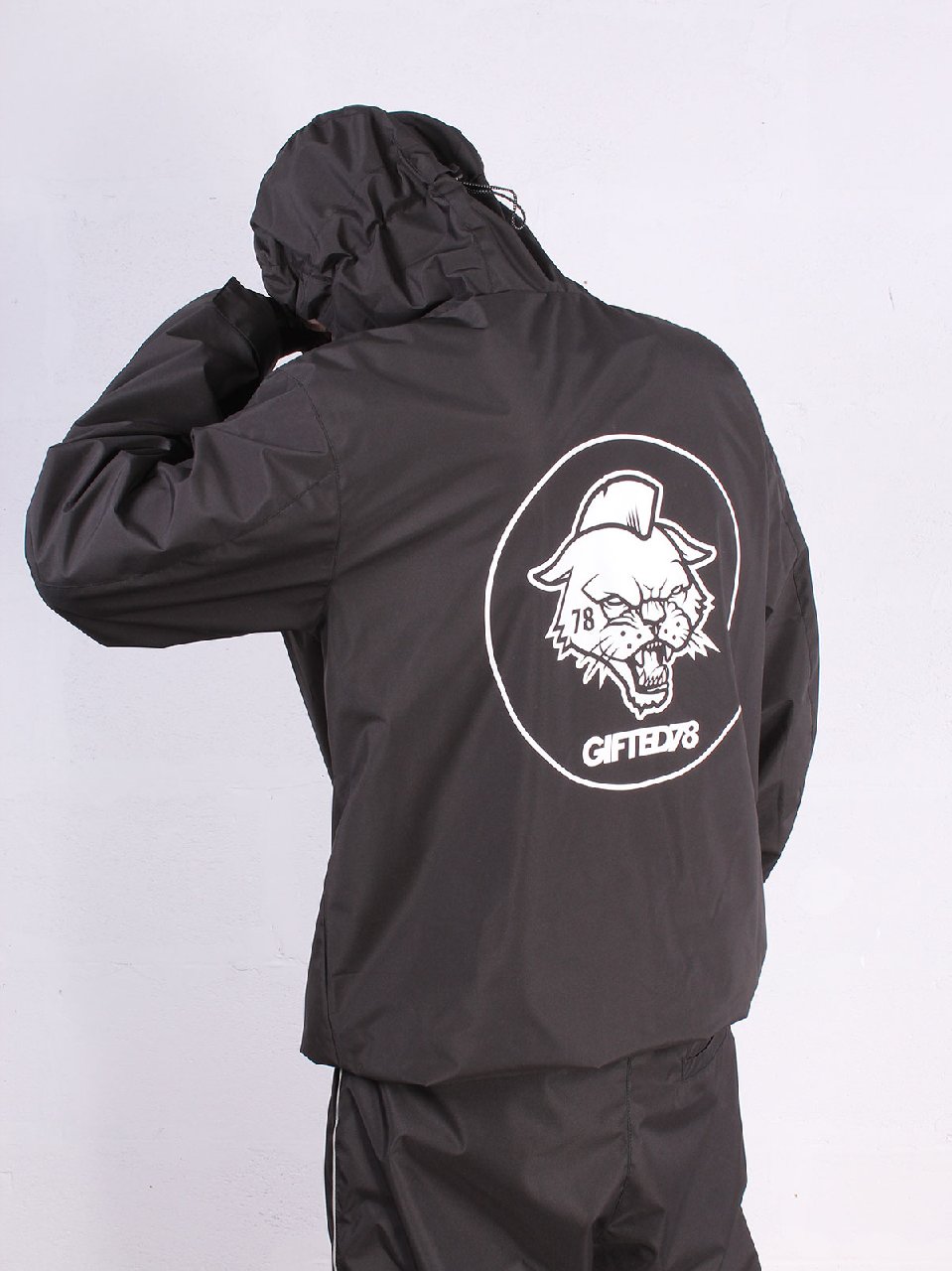 Фирменный капюшон с козырьком и двухосевой системой утяжек на месте.