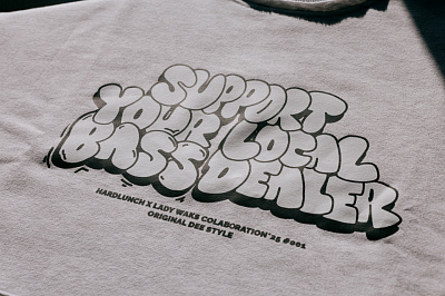 Первый из принтов коллаборации Hard Lunch x Lady Waks - "Support Your Local Bass Dealer"
