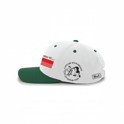 Коллаборация брендов HUF и KODAK. Используя обширный архив классической рекламы, упаковки и дизайна продукции Kodak, HUF x Kodak смешивают видение каждого бренда через новую линзу. Демонстрируя пересечение уличной фотографии и культуры скейтбординга с помощью ретро-брендинга, переосмысленной графики и неожиданных решений, HUF x Kodak фиксируют новые моменты и идеи с помощью классического и современного дизайна.6-панельная кепка из 100% хлопкового твила