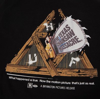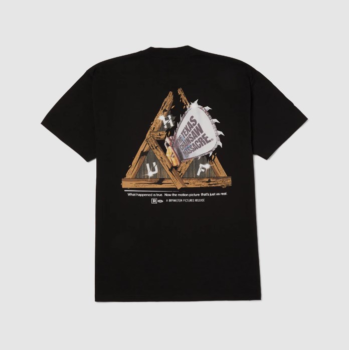 Футболка Huf из коллаборации с кино-франшизой «Техасская резня бензопилой». Изделие выполнено из хлопковой ткани и дополнено двойным брендингом.