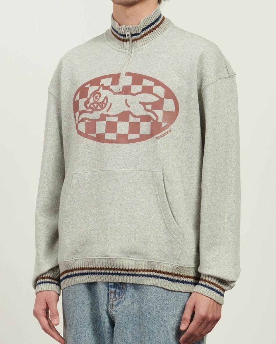 Толстовка на молнии ICECREAM CHECKER RUNNING DOG QUARTER ZIP HEATHER GREY