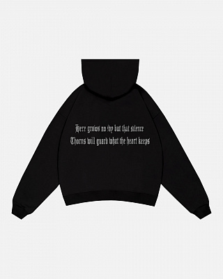 Плющ, традиционно символизирующий жизнь и привязанность, заменён тишиной. Шипы, как в геральдике и христианской иконографии, — не жестокость, а охрана, защита, периметр, охраняющий внутреннее и уязвимое.