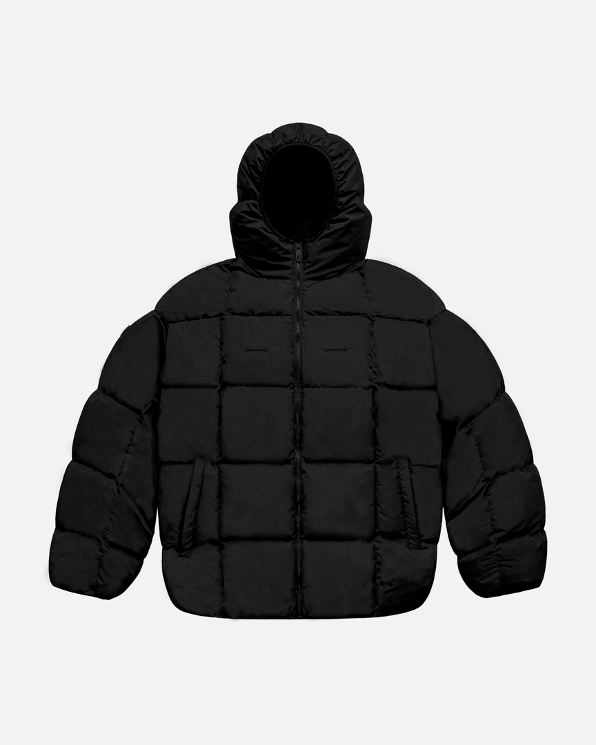 Теплый и объёмный оверсайз паффер сложной конструкции- верх выполнен из матовой ripstop мембраны