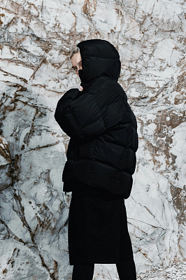 Теплый и объёмный оверсайз паффер сложной конструкции