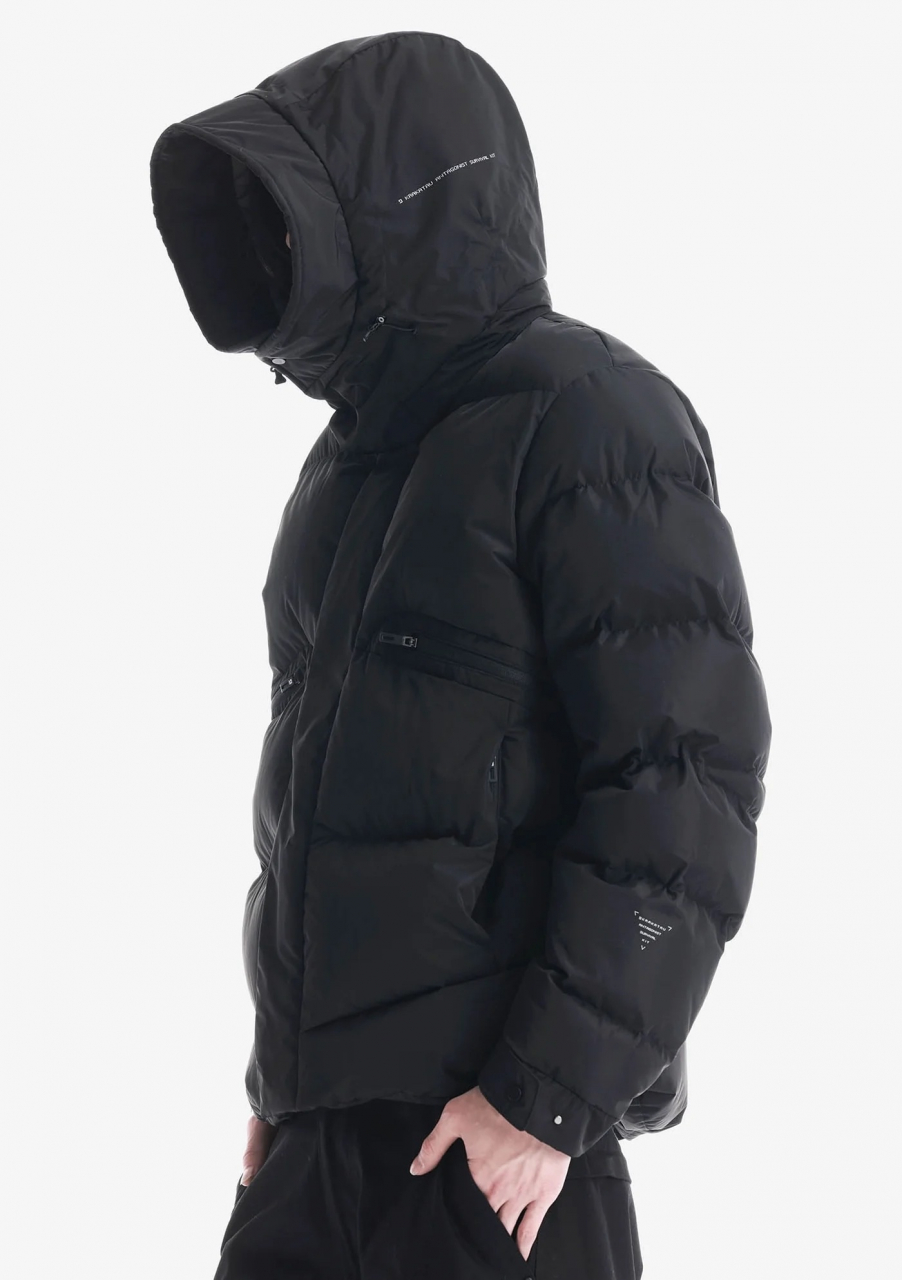 Короткий водостойкий пуховик AITKEN из функциональной ткани. Утеплитель сочетает натуральный пух и синтетическое волокно — тёплый, лёгкий, устойчивый к влаге и сохраняет форму. Съёмный капюшон с армированным отворотом, вентиляционная планка на магнитах, внутренние стропы для ношения за плечами, продуманная система карманов — всё рассчитано на защиту, мобильность и комфорт.