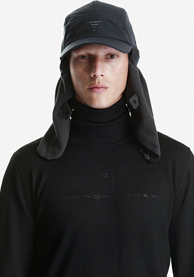 Зимняя шапка-трансформер с подкладкой из флиса. Может носится как обычная пятипанельная camper cap или с пристёгнутой нижней частью.