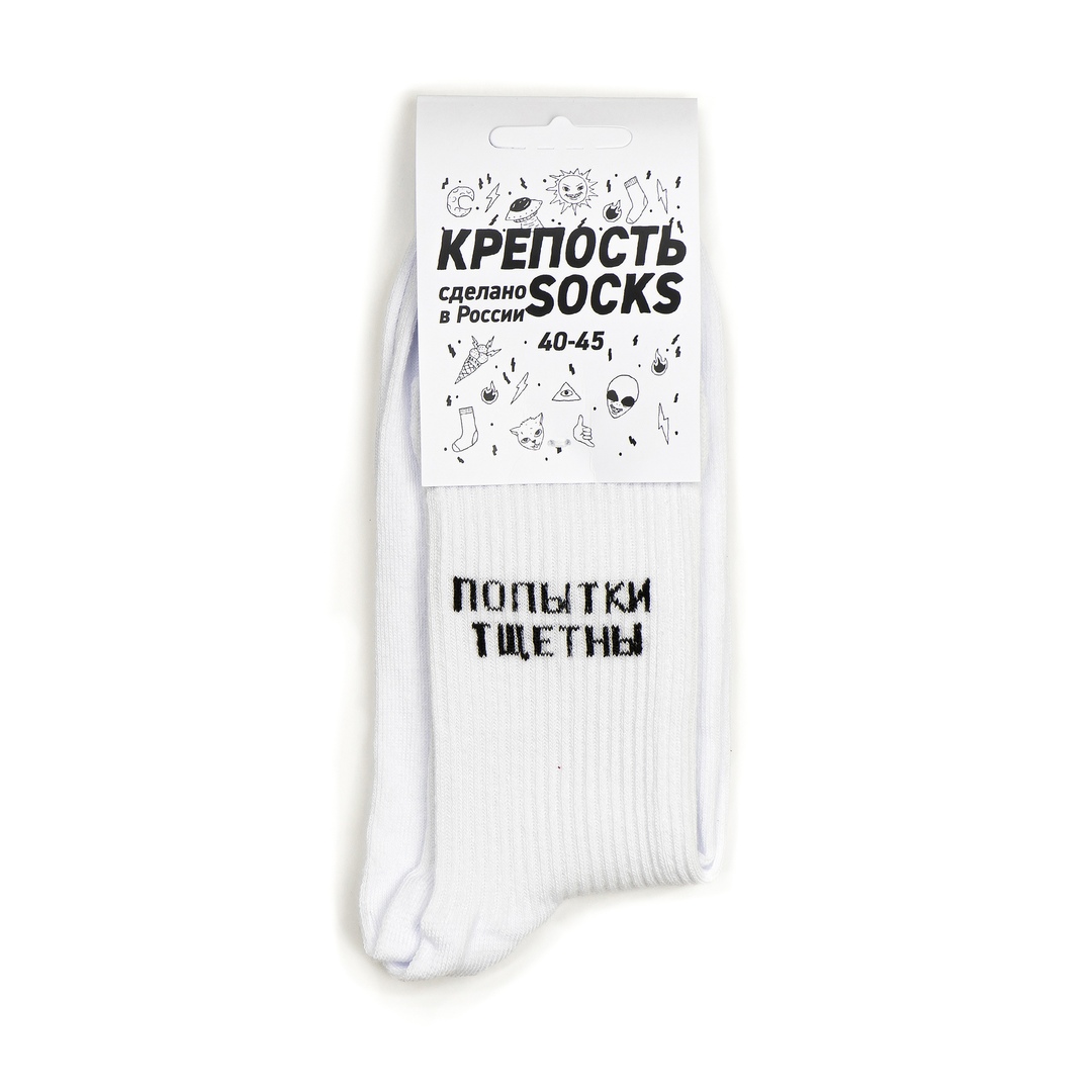 Носки КРЕПОСТЬ SOCKS "Попытки тщетны" белый