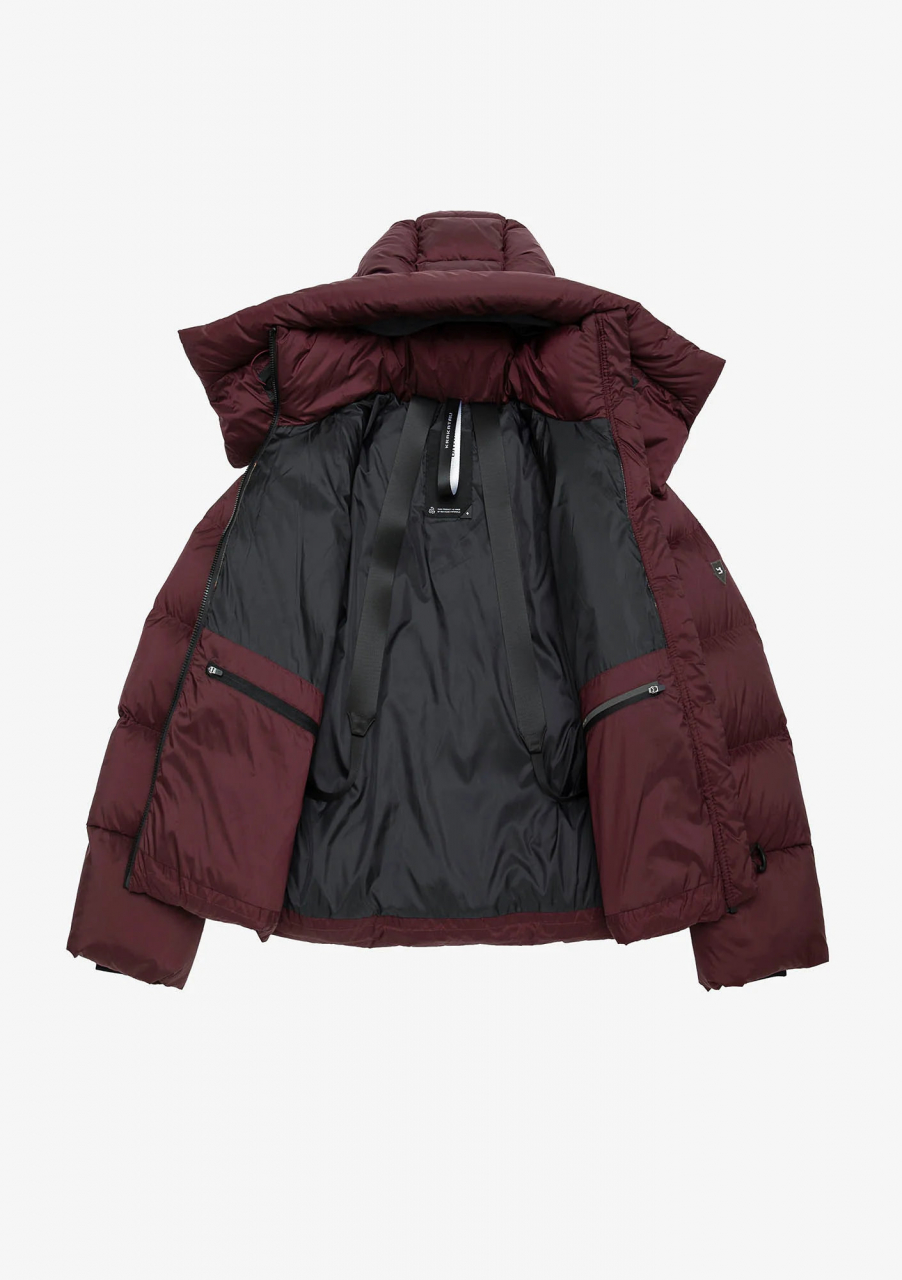 Функциональный пух — 50% утиный пух (90/10), 50% полиэстеровые коконы Repreve® из переработанных пластиковых бутылок, значительная часть которых поднята из океана. Эта технология позволяет использовать вдвое меньше пуха водоплавающих, сохраняя уровень теплозащиты на уровне пуховика из 100% натурального пуха. Упругость 670FP.