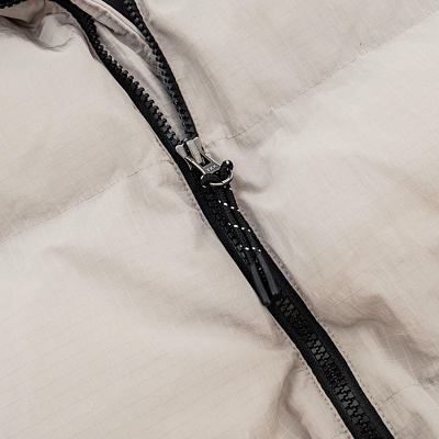 Свободный крой, резинки с регулятором на поясе и вороте, два боковых кармана на молнии YKK, внутренний карман на груди, принт светоотражающей краской на левом рукаве.