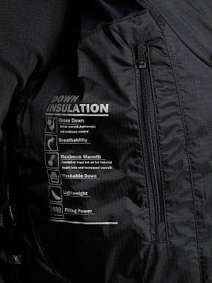В качестве утеплителя используется натуральный гусиный пух 1000 набивки. Это превосходная защита от мороза.