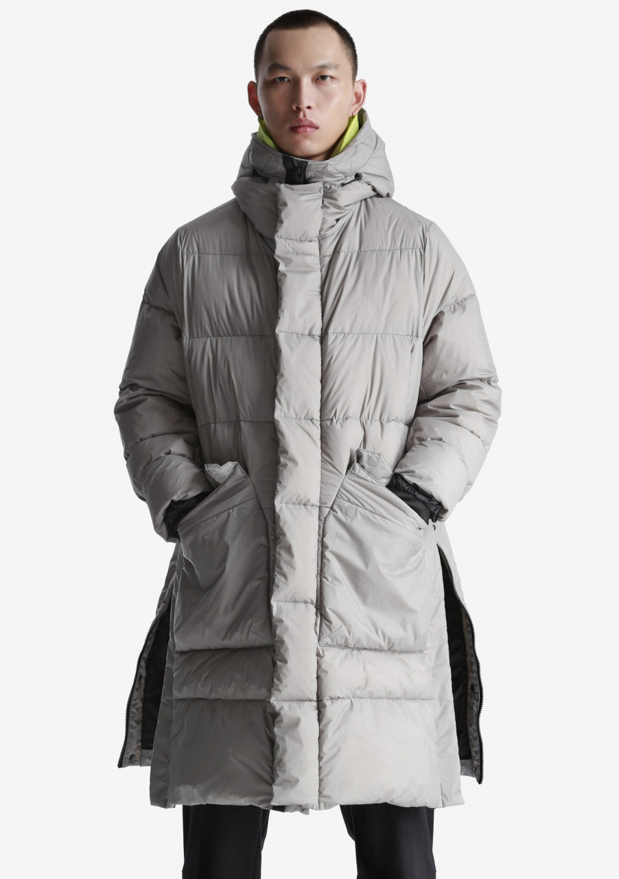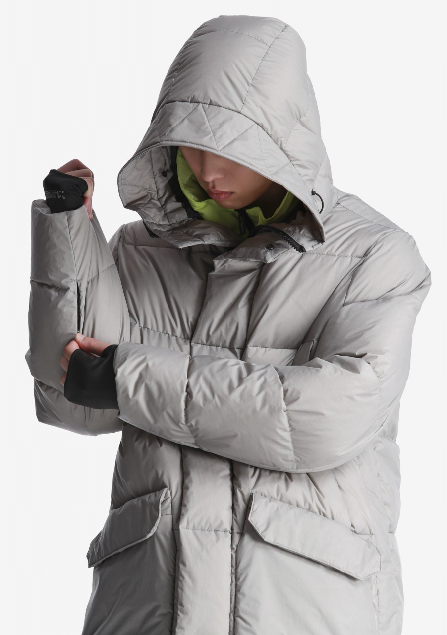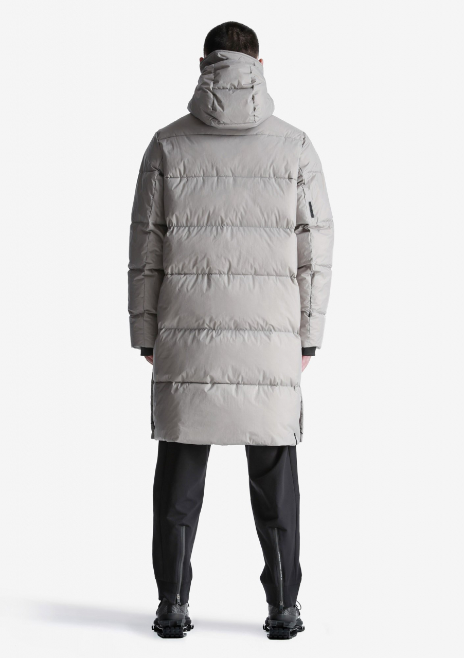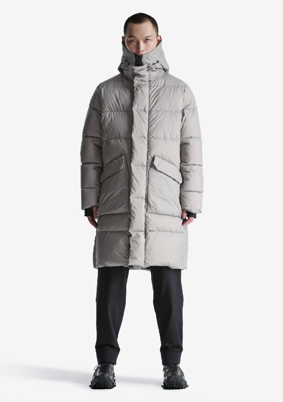 Пуховик с высоким уровнем теплозащиты до -30 °С. На основе функционального утеплителя из натурального пуха, обогащённого микроскопическими коконами из переработанного пластика. Оснащён глубоким капюшоном с ветрозащитной горловиной, боковыми шлицами с доступом к внутренним карманам и внутренними стропами для переноски за плечами. Актуален для активных передвижений по городу и путешествий. Назван в честь лунного кратера Aitken.- Туннельный капюшон с широким отворотом, высокой горловиной и двойной системой регулировки глубины;