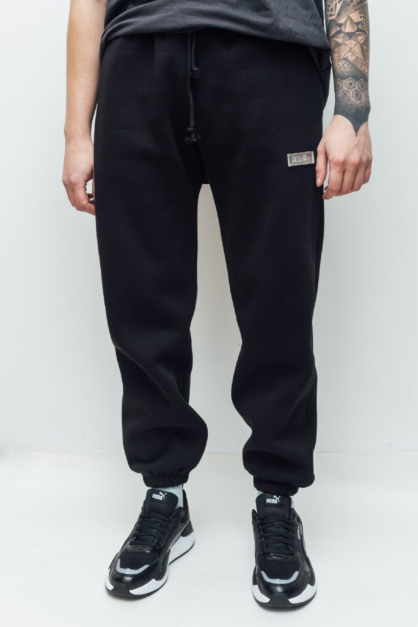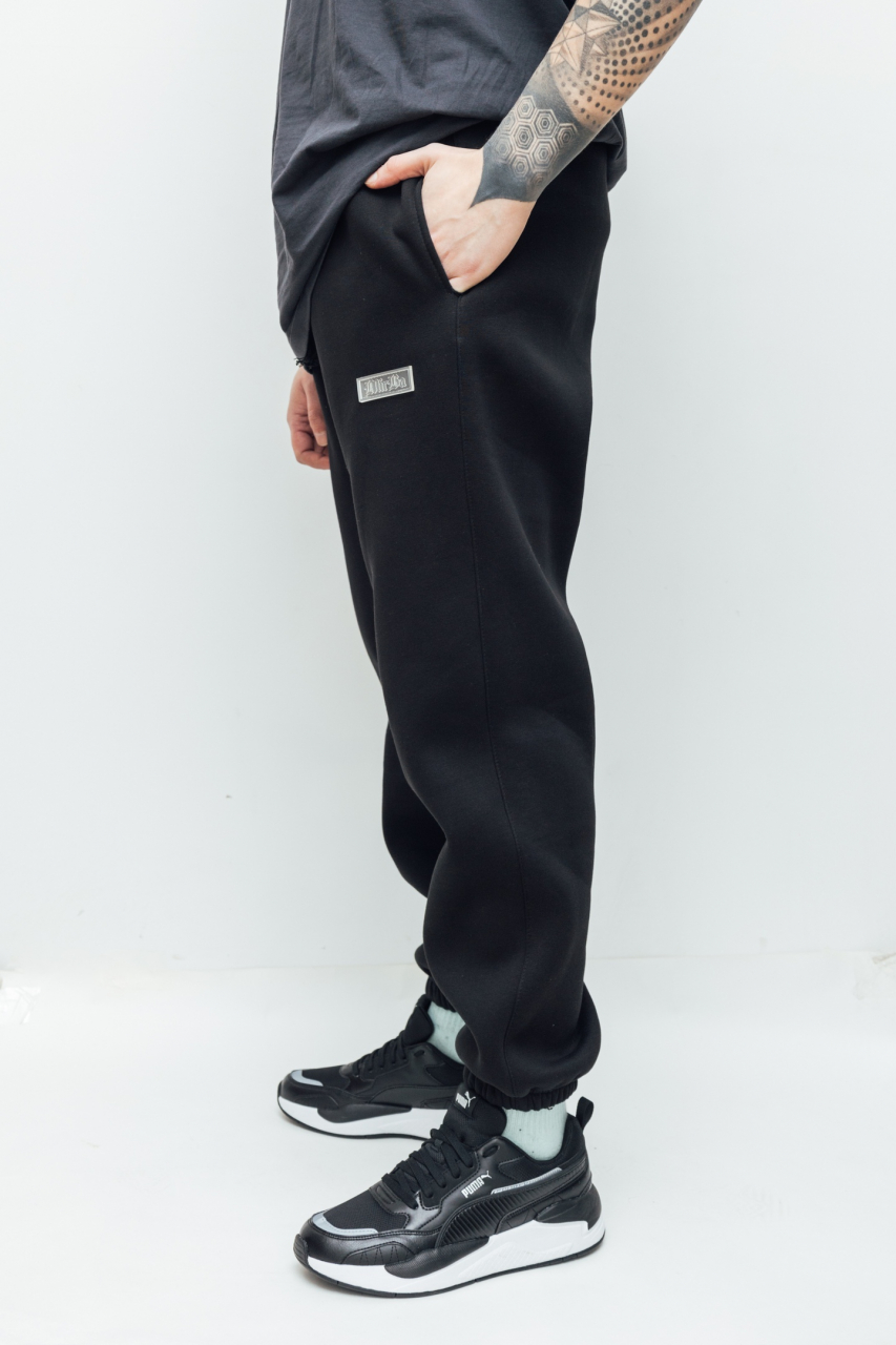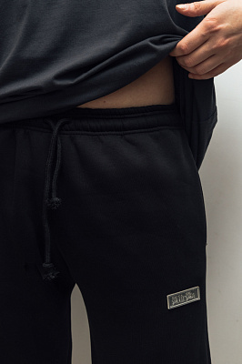 Оверсайз крой, пояс с широкой резинкой и шнуром для затяжки, манжеты на резинке и два кармана. Футер с начесомСостав: 80% хлопок / 20% полиэстер. ПВХ патч с логотипом