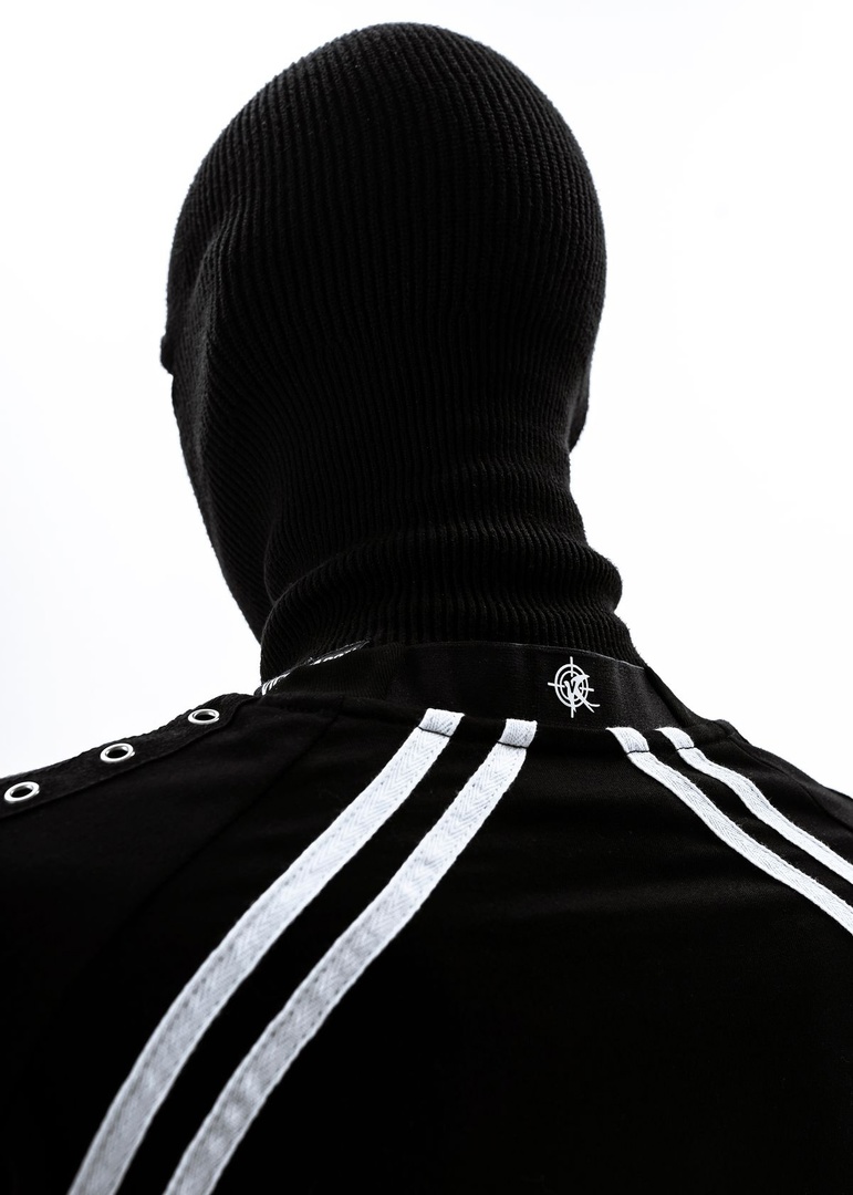 Изделие дополнено хлопковыми стропами-лентами по длине рукавов, а также передней и задней частей туловища. Рукава также дополнены стропами-лентами с металическими кольцами. Силиконовый брендированный патч на груди. В ворот сзади вставлена эластичная плотная резинка с силиконовым лого. 1000