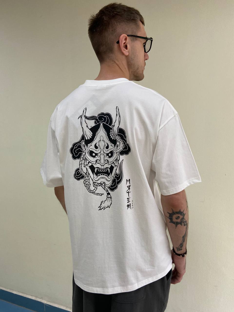 Футболка МЯТЕЖ "ONI MASK" оверсайз белый