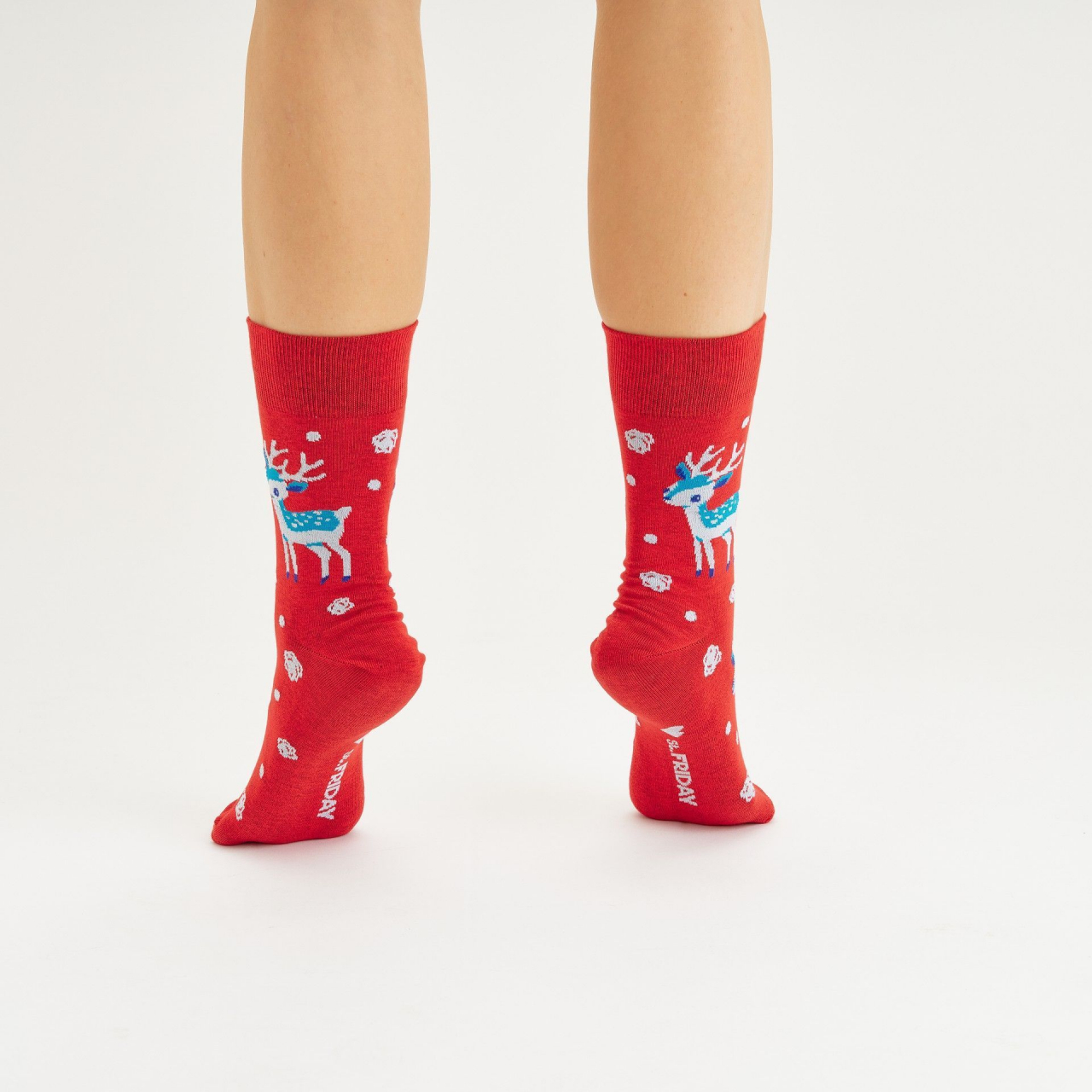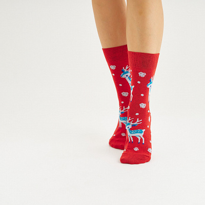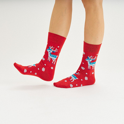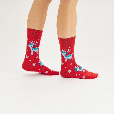 Оленёнок дорос до взрослых рогов, но не потерял юношеский задор. Он умчал в страну оленью и теперь живет по своему хотенью. Как и прежде радуется первым сугробам и ловит ртом падающие снежинки. А еще катает огромные шары из снега, чтобы слепить из них крепость и щекотит рогами тучи в поисках голубого неба. Мы всё выдумали, так? А вот и нет, мы всё видели своими глазами в месте, где сосны рвутся в небо, где быль живет и небыль. Носки с героем зимней сказки для тех, кто еще верит в чудеса.