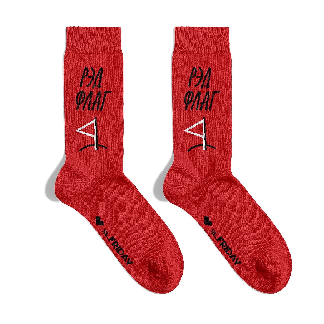 Модель «Рэд флаг» была создана в рамках ежегодного конкурса на авторский дизайн носков «St.Friday Contest 2025: Ходят слухи».