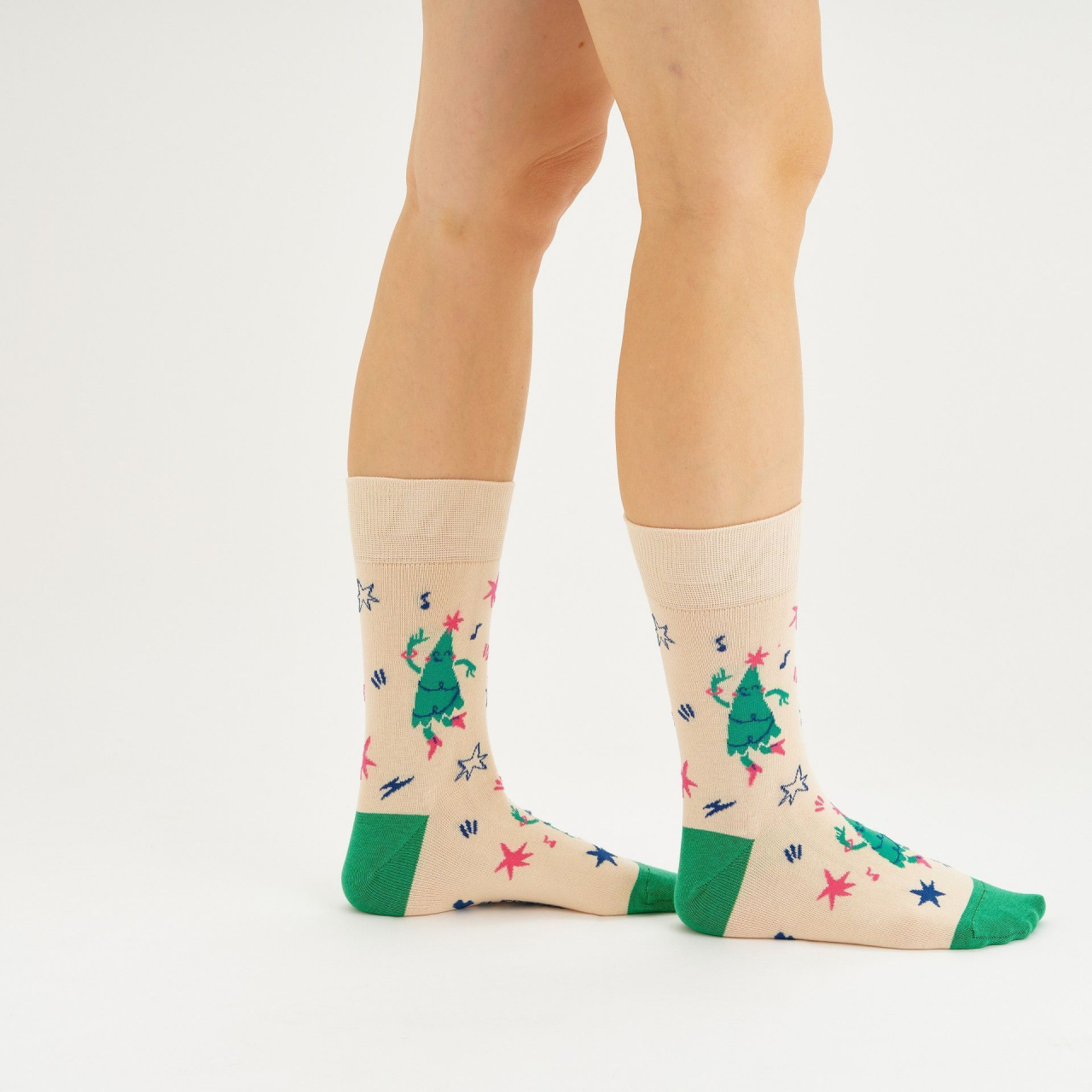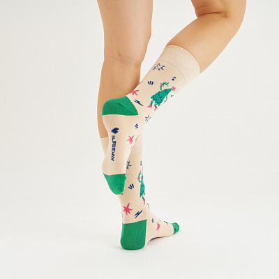 Каждый год 31 декабря мы ходим в баню, а роскошница в розовых сапожках ударяется во все тяжкие. Крутит пластиковые браслеты под хиты Аллегровой, кружит голову себе и кавалерам. Посещает вечеринки только при условии наличия на них селёдки под шубой и трансляции «Старых песен о главном». Уважает люрекс и селективные ароматы с древесными ноткам. Фанатеет от любых оттенков зеленого и виртуозно комбинирует их с яркими аксессуарами. Носки с виновницей торжества, выглядят как приглашение к распитию бутылочки «Советского», таков и был план.