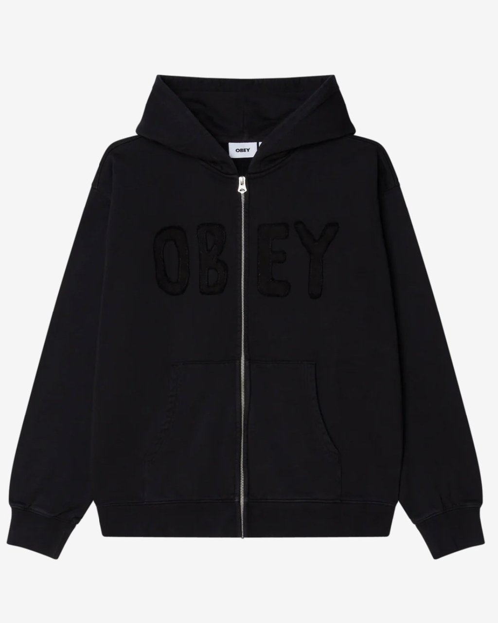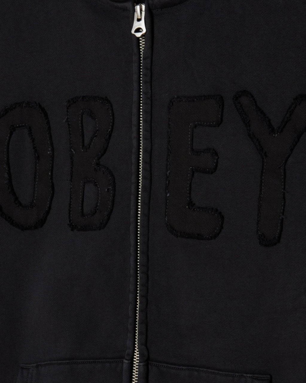 Худи на молнии OBEY HYBRID FADED ZIP HOOD DIGITAL BLACK FADED WASH