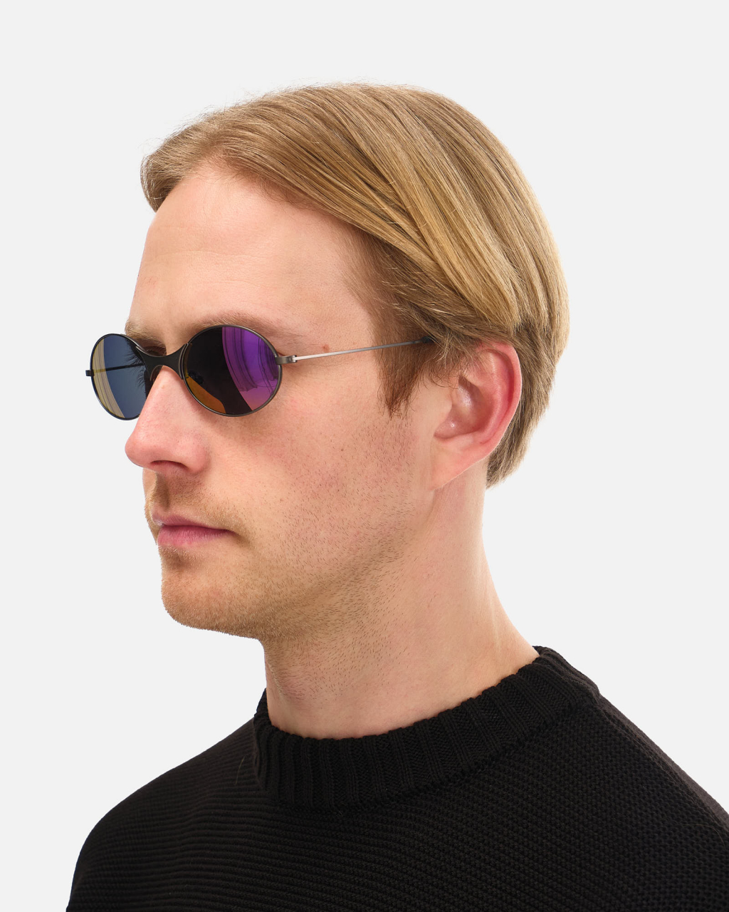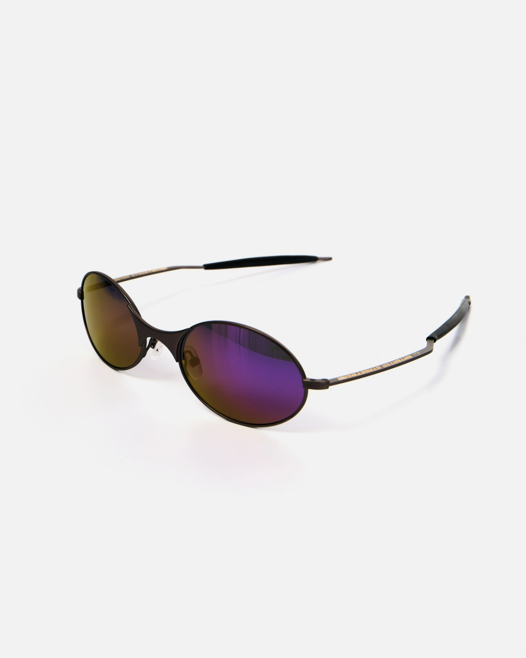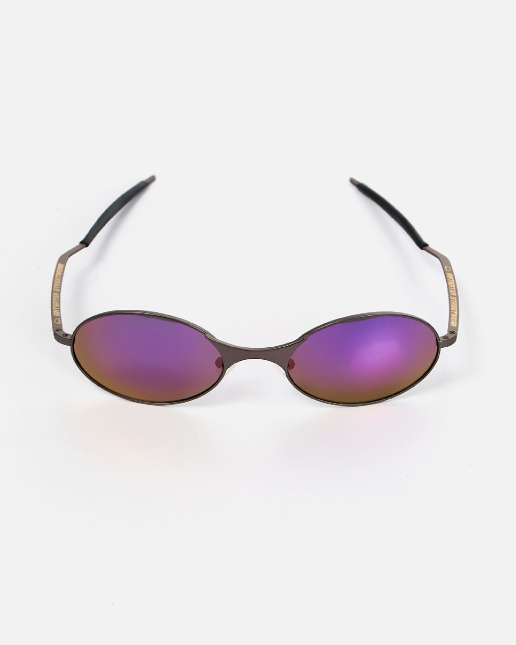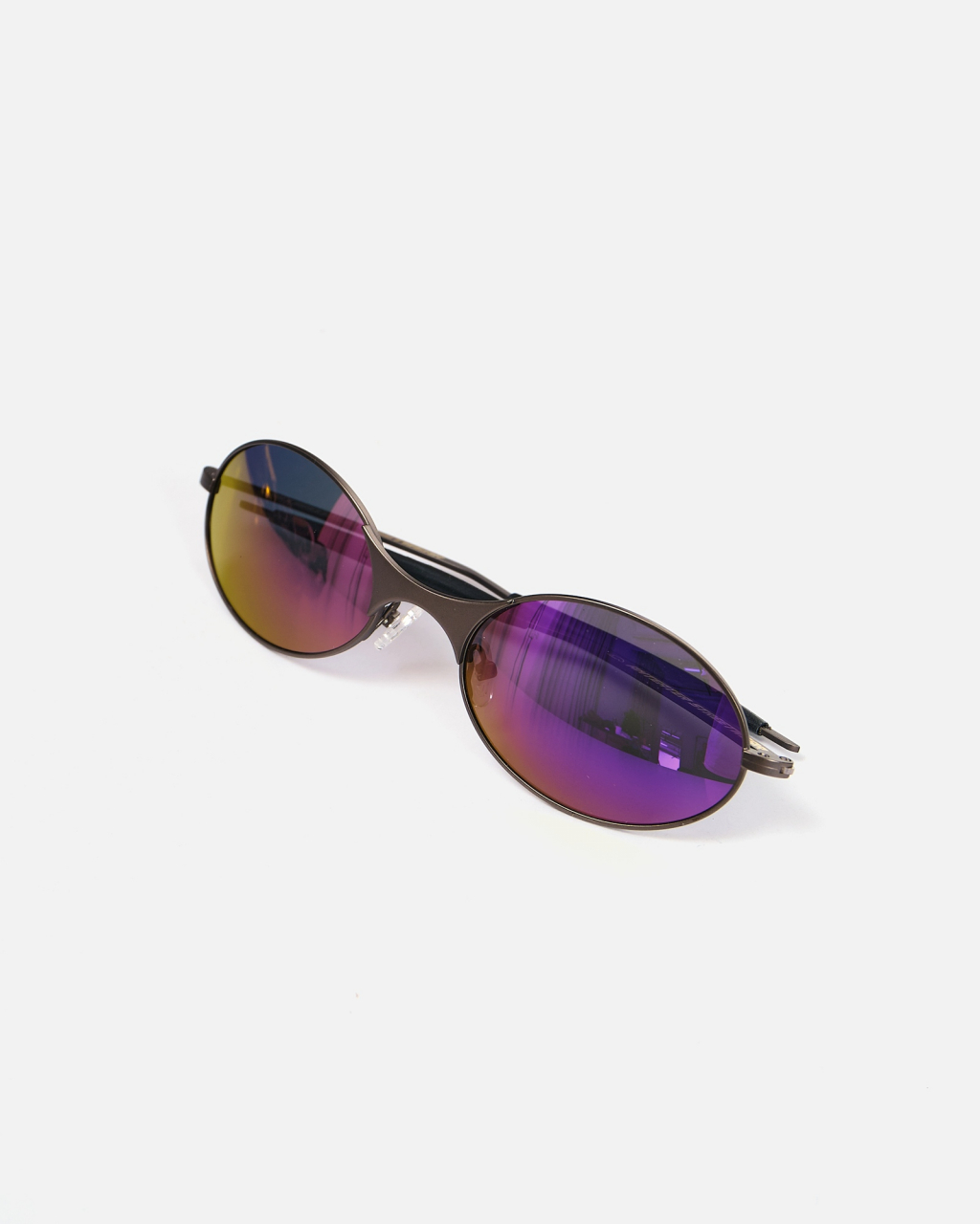 Солнцезащитные очки Anteater UFO в металлической оправе. Стильные овальные солнцезащитные очки с тонкой металлической оправой — универсальный аксессуар для повседневных и модных образов. Лаконичный дизайн с аккуратным мостом и изящными дужками придаёт модели современный и слегка винтажный характер, брендинг Anteater Streetwear выполнен лазерной гравировкой на дужках. Линзы тёмно-фиолетового оттенка обеспечивают комфорт при ярком солнце и защищают глаза от ультрафиолета. Лёгкая металлическая конструкция удобно сидит на лице, а эргономичные носоупоры повышают комфорт при длительном ношении.
