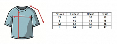 ХS - ширина - 59 см, длина - 63 см, рукав + плечо - 46 см.