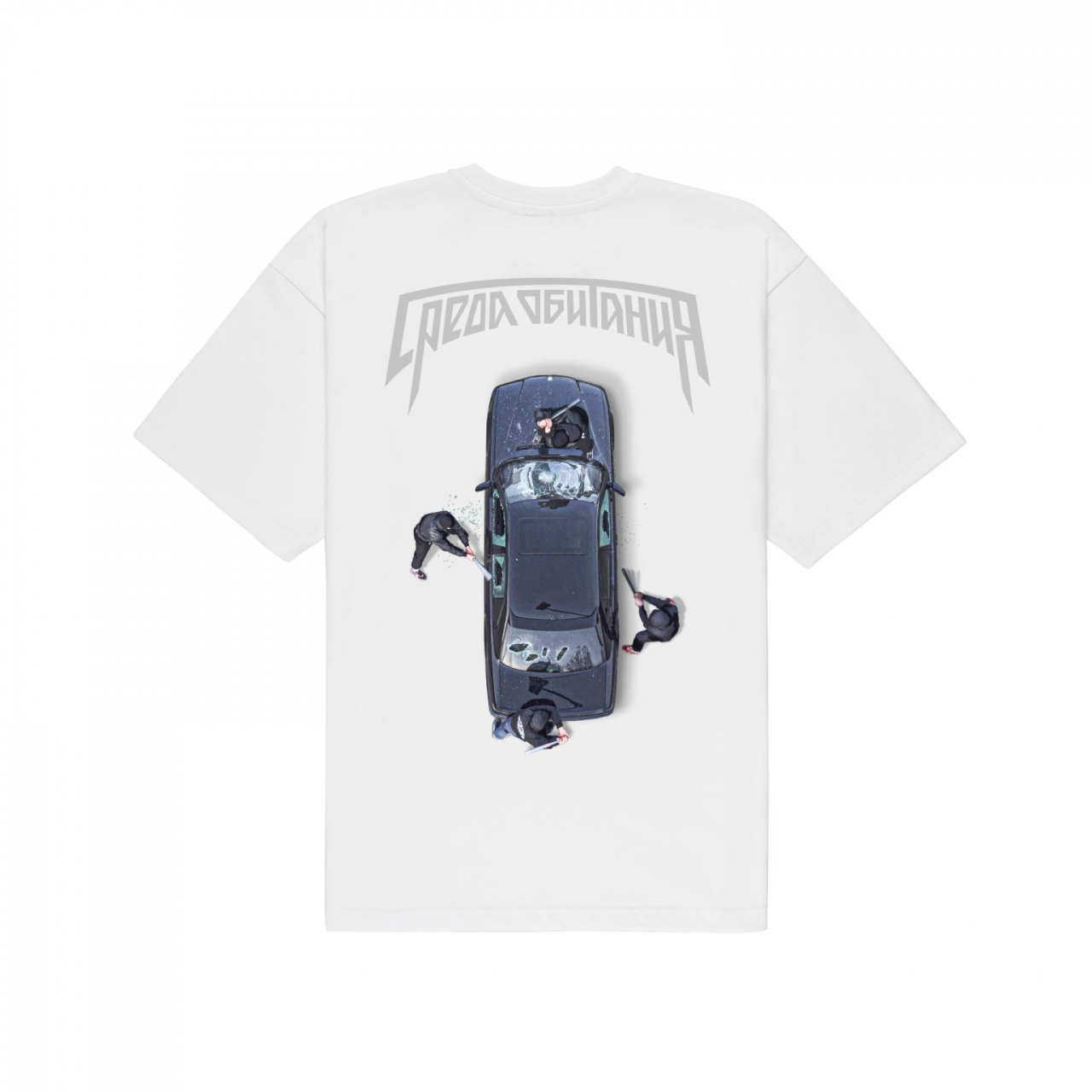 -Футболка свободного кроя.-На груди расположен логотип «Среда обитания»