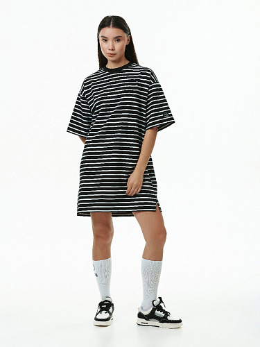 Футболка THE BAD FRIENDS Dress T-shirt Stripes удлиненное черно-белый