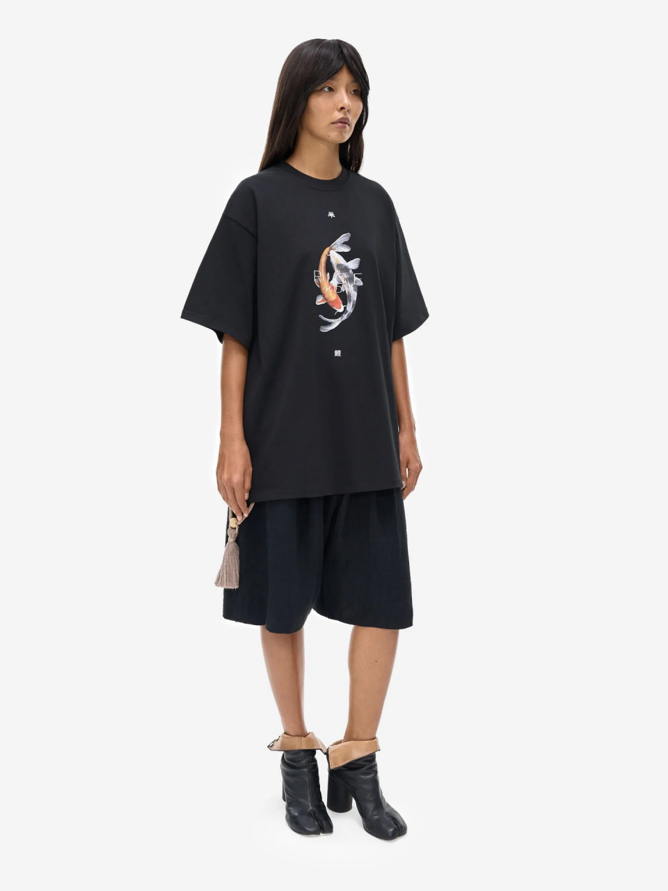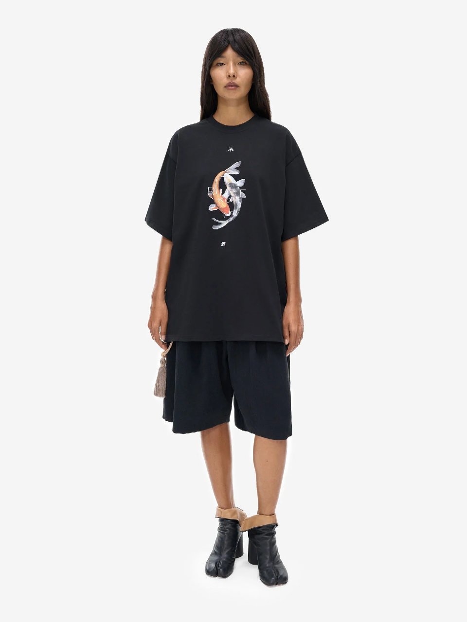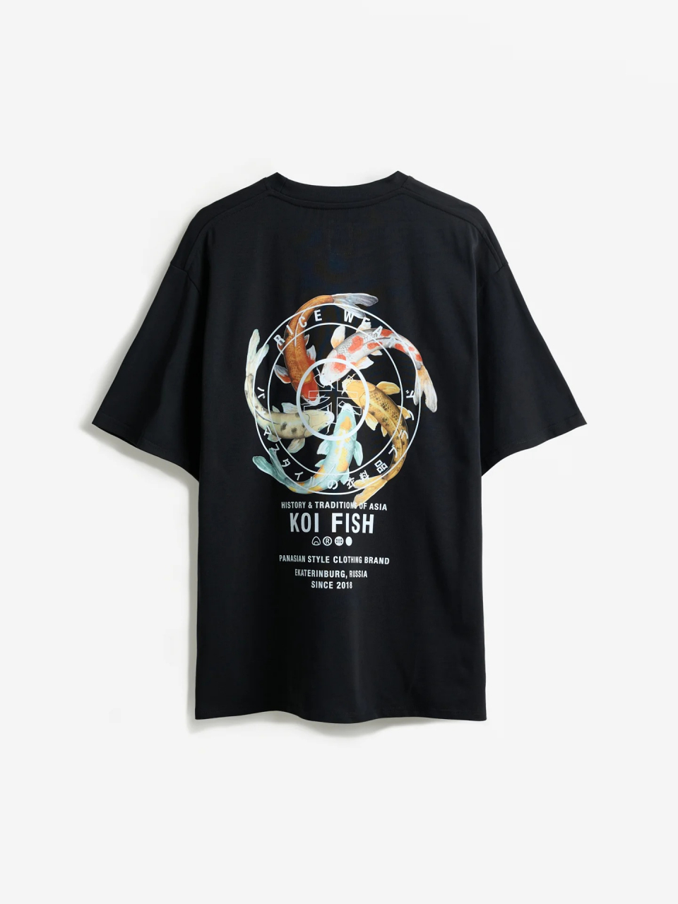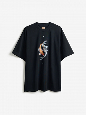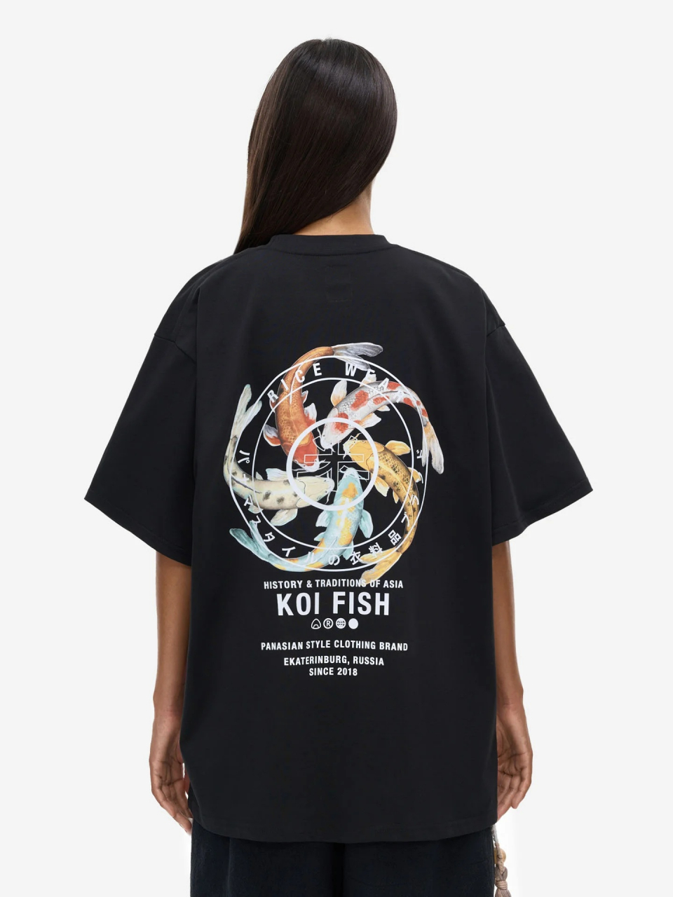 Карп Кои является традиционным восточным символом удачи, благосостояния, настойчивости и силы духа. Родом из Японии и Китая, эта разновидность декоративного карпа была высоко почитаема на протяжении столетий. Её не употребляют в пищу, а разводят ради эстетического удовольствия. Цветовая гамма варьируется от традиционного сочетания белого, красного и черного до ярких металлизированных покрытий, радужных переливов и экзотических рисунков. Кои происходит от японского и означает "карп". Эти ярко окрашенные рыбы в традиционной культуре олицетворяют достижение жизненных целей, преодоление трудностей и гармоничную жизнь, из-за своей способности плавать против течения.Печать выполнена методом шелкографии, которая надолго сохранит принт в первоначальном виде. Футболка свободного кроя с круглым воротом, выполнена из 100% хлопка высокого качества для комфортных образов на каждый день. Идеально сочетаются со всей одеждой в линейке RICE.