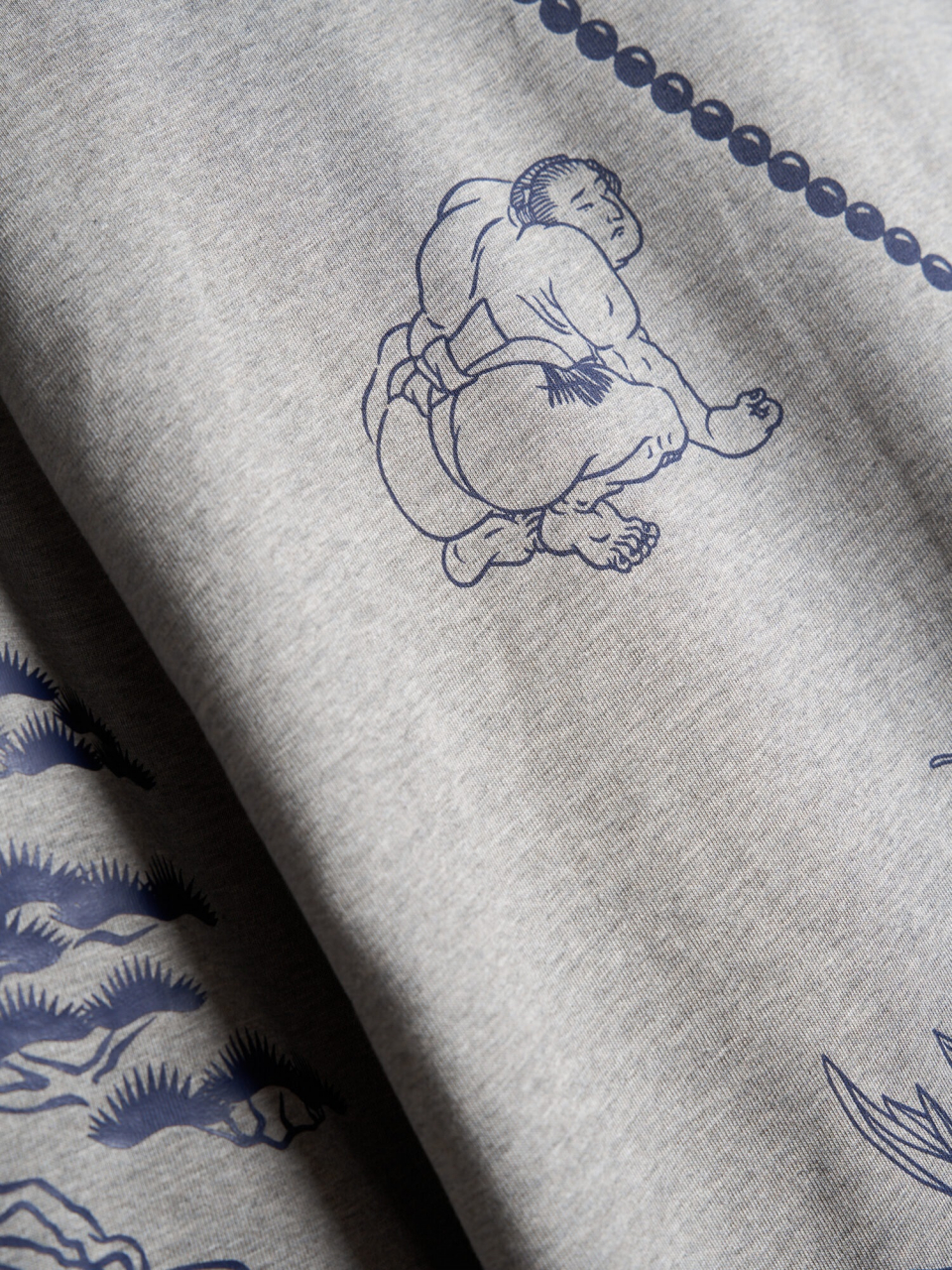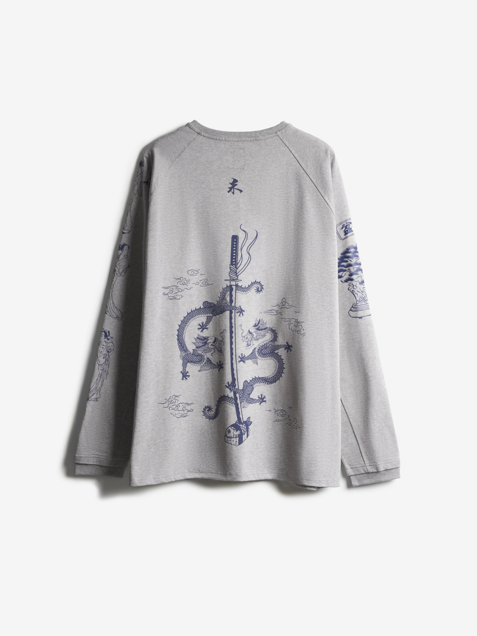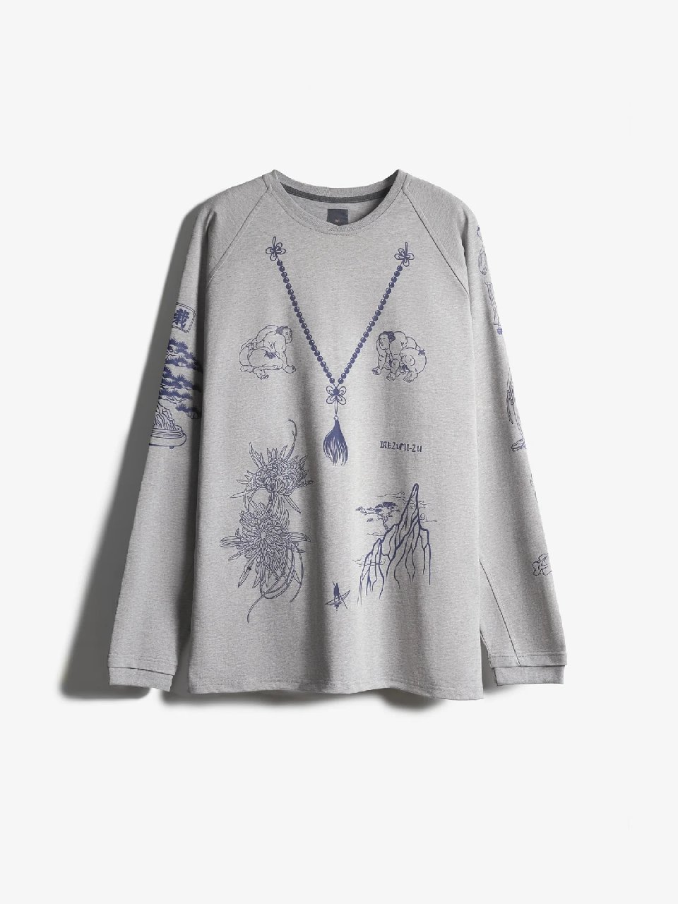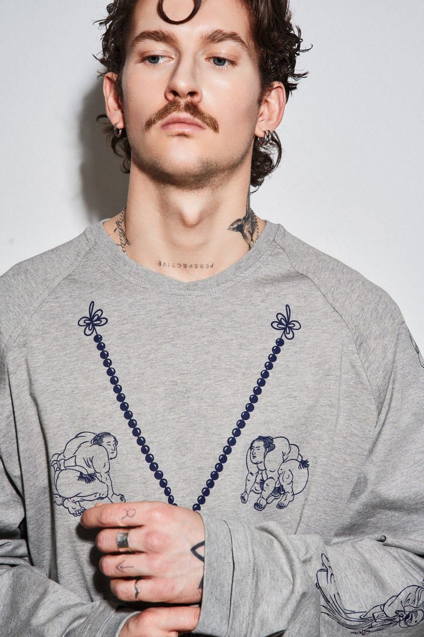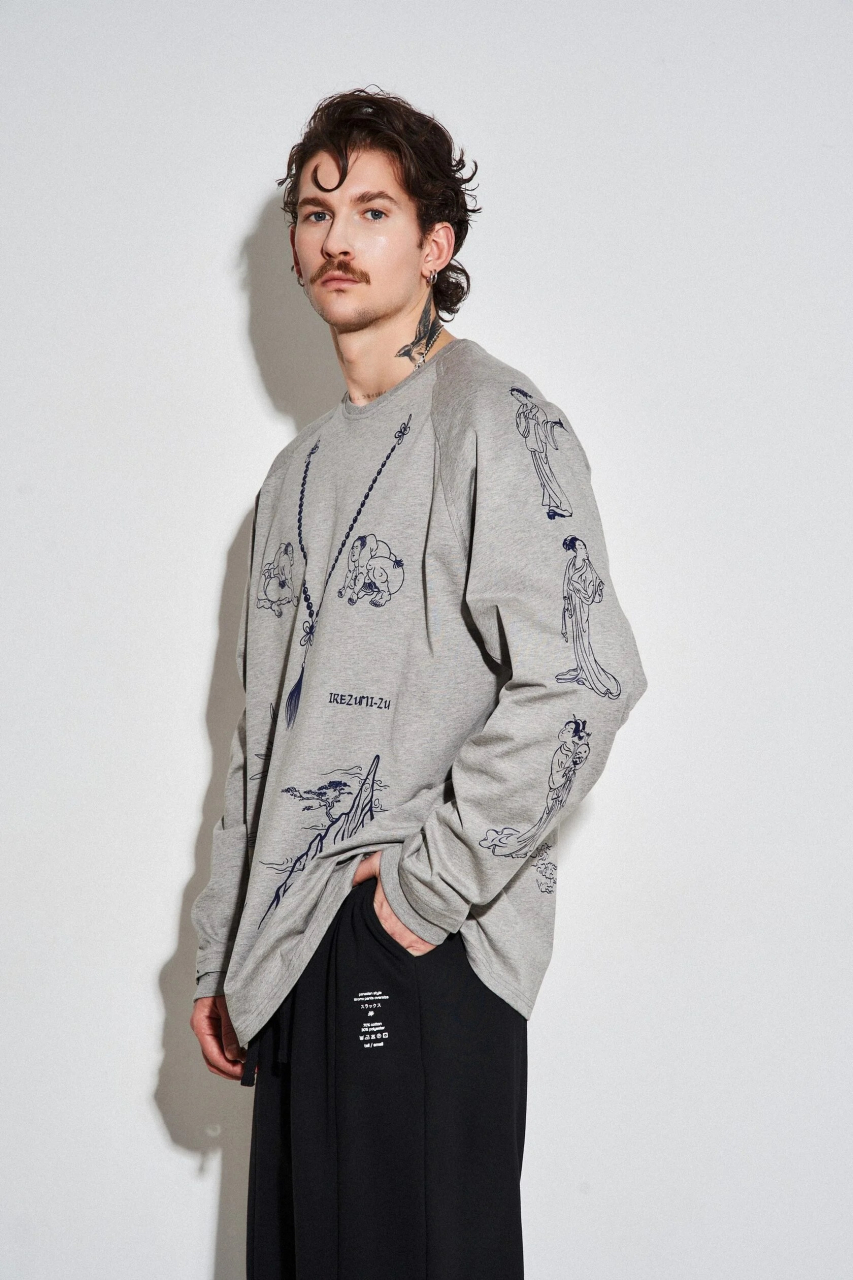 Лонгслив как тату-полотноIrezumi (入れ墨) — буквально «введённые чернила». Проще: традиционная японская татуировка. Но на самом деле — это язык, а не украшение. Ирезуми всегда читается целиком: через ось тела, через баланс образов, через сочетание силы, быта и иронии. Мы сделали Irezumi-zu именно так.