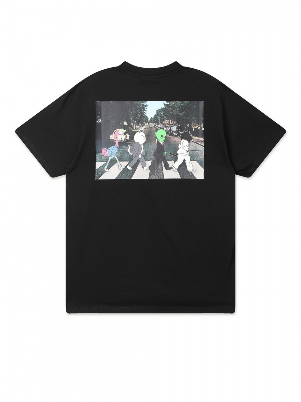 Футболка Ripndip из плотной хлопковой ткани. Изделие дополнено графикой, отсылающей к обложке альбома The Beatles — Abbey Road.