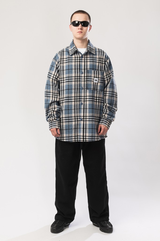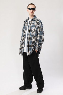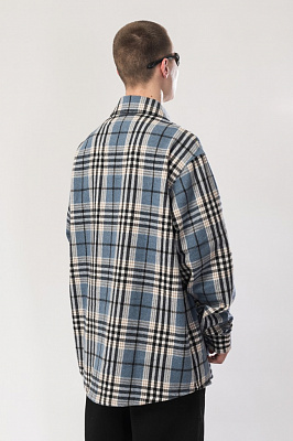 Рубашка в клетку свободного кроя с накладным карманом на груди.