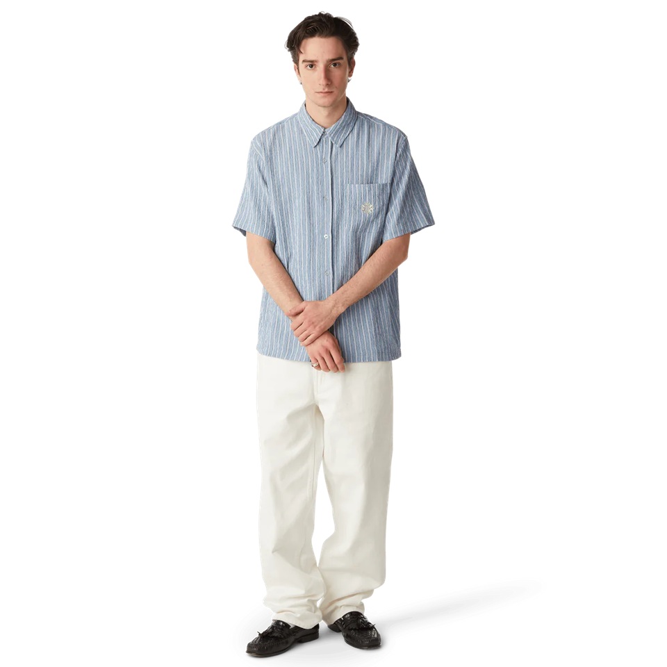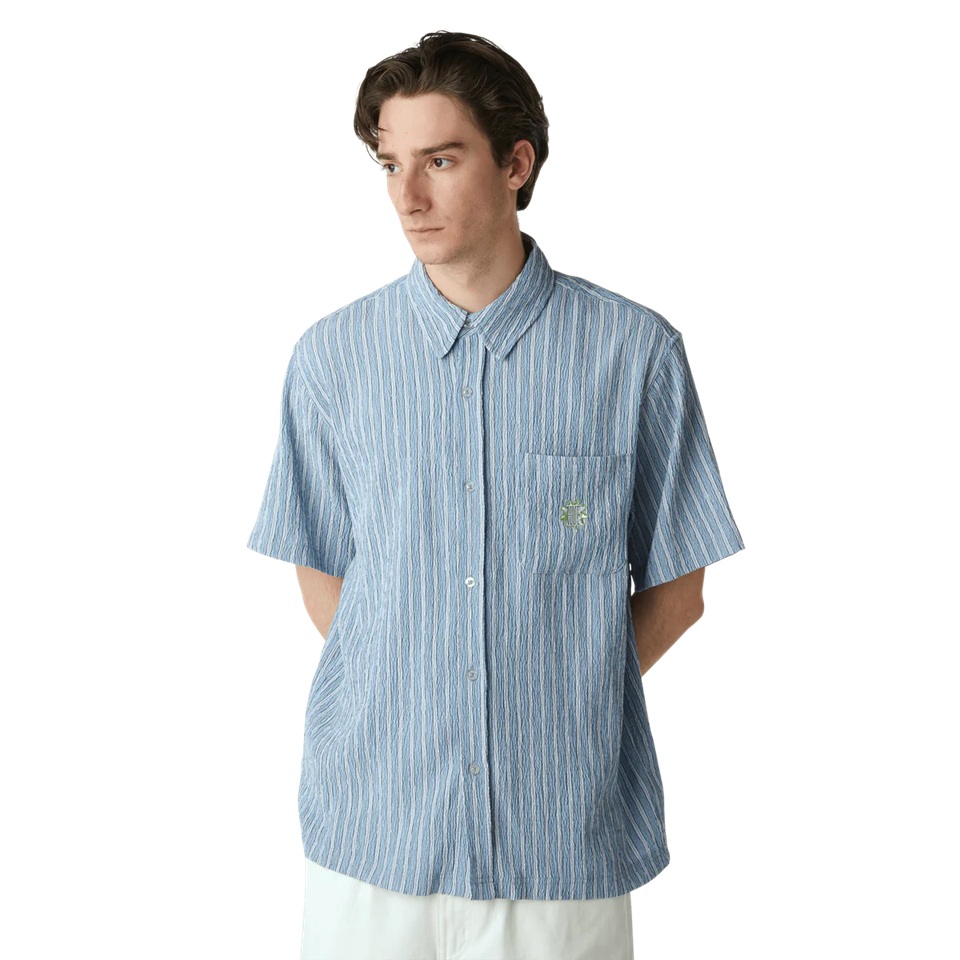 Рубашка HUF APOLLO S/S STRIPED SHIRT POOL BLUE