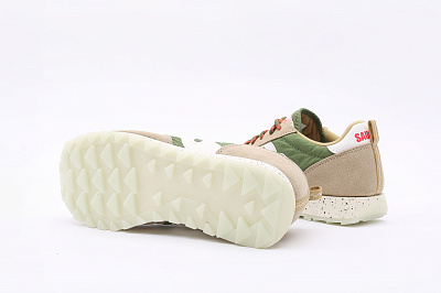 Изготовлены из рипстоп-нейлона с веревочными шнурками, крапчатой межподошвой и язычком, натуральной замши.