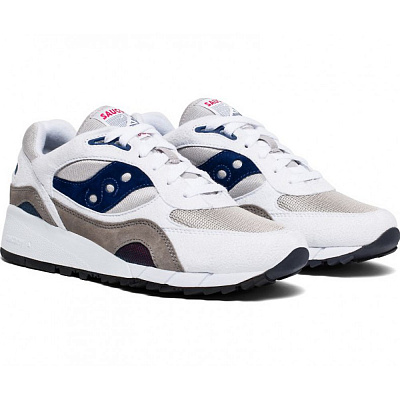 Мужские кроссовки американской марки Saucony, основанной в 1898 году. В основе силуэта лежит классическая модель Shadow 6000, дебютировавшая в 1991 году. Верхняя часть выполнена из сочетания замши, текстиля и вентилируемой сеточки mesh. Оптимальный уровень комфорта обеспечивается за счет мягкой стельки, амортизационной технологии Ionic Cushioning System и дополнительной вставки в области пятки. Кроссовки представлены в светлой расцветке, украшенной контрастными элементами.