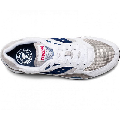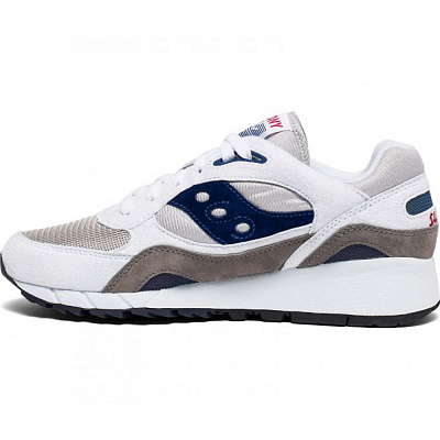 Мужские кроссовки американской марки Saucony, основанной в 1898 году. В основе силуэта лежит классическая модель Shadow 6000, дебютировавшая в 1991 году. Верхняя часть выполнена из сочетания замши, текстиля и вентилируемой сеточки mesh. Оптимальный уровень комфорта обеспечивается за счет мягкой стельки, амортизационной технологии Ionic Cushioning System и дополнительной вставки в области пятки. Кроссовки представлены в светлой расцветке, украшенной контрастными элементами.Сочетание замши, текстиля и сетки mesh
