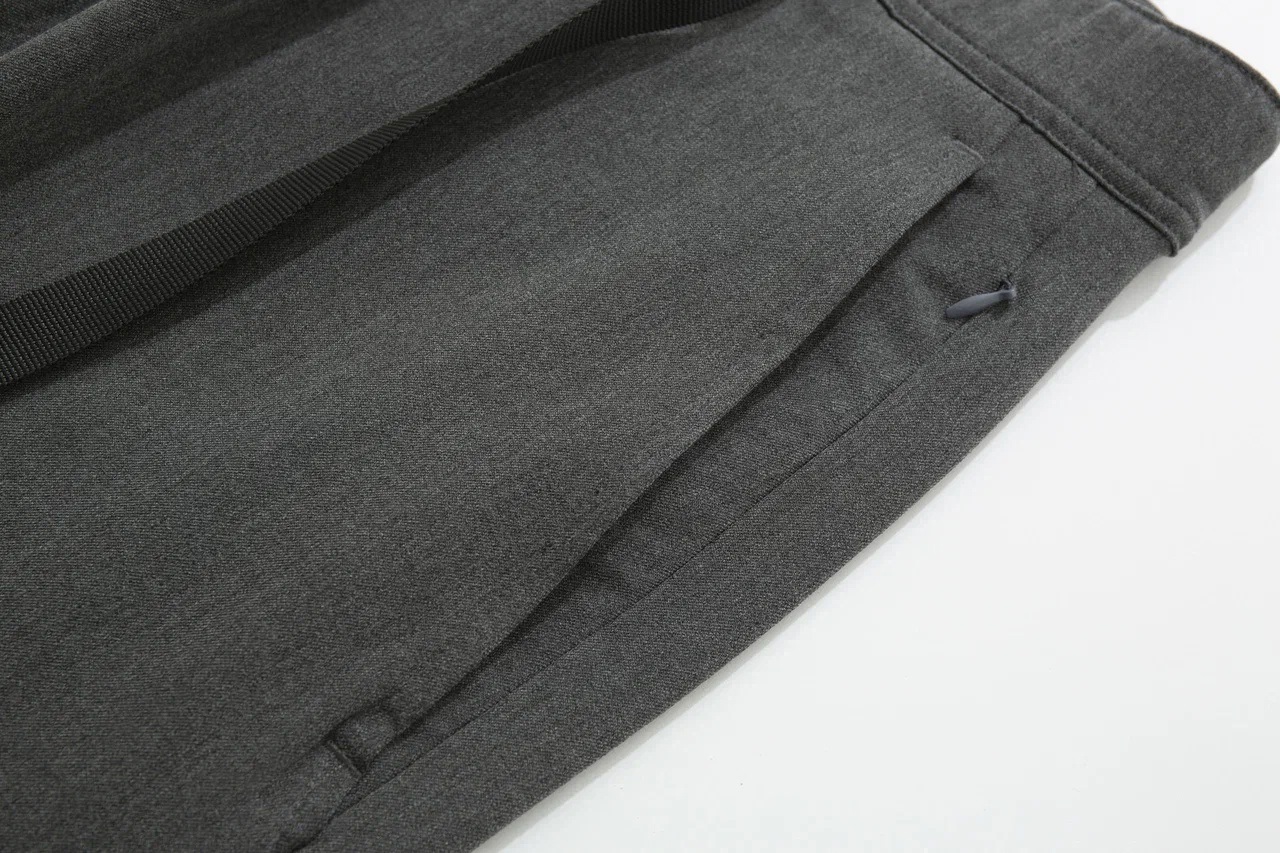 Брюки прямого кроя слегка заужаются книзу, свободный фит. Выполнены из приятной к телу и легкой ткани. В пояс встроен регулируемый ремень, брендированная молния, застегиваются на кнопку. Два боковых кармана с каждой стороны - один из них на молнии, два кармана сзади.